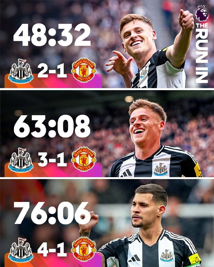 ●这也是英超联赛历史,纽卡首次单赛季联赛双杀曼联