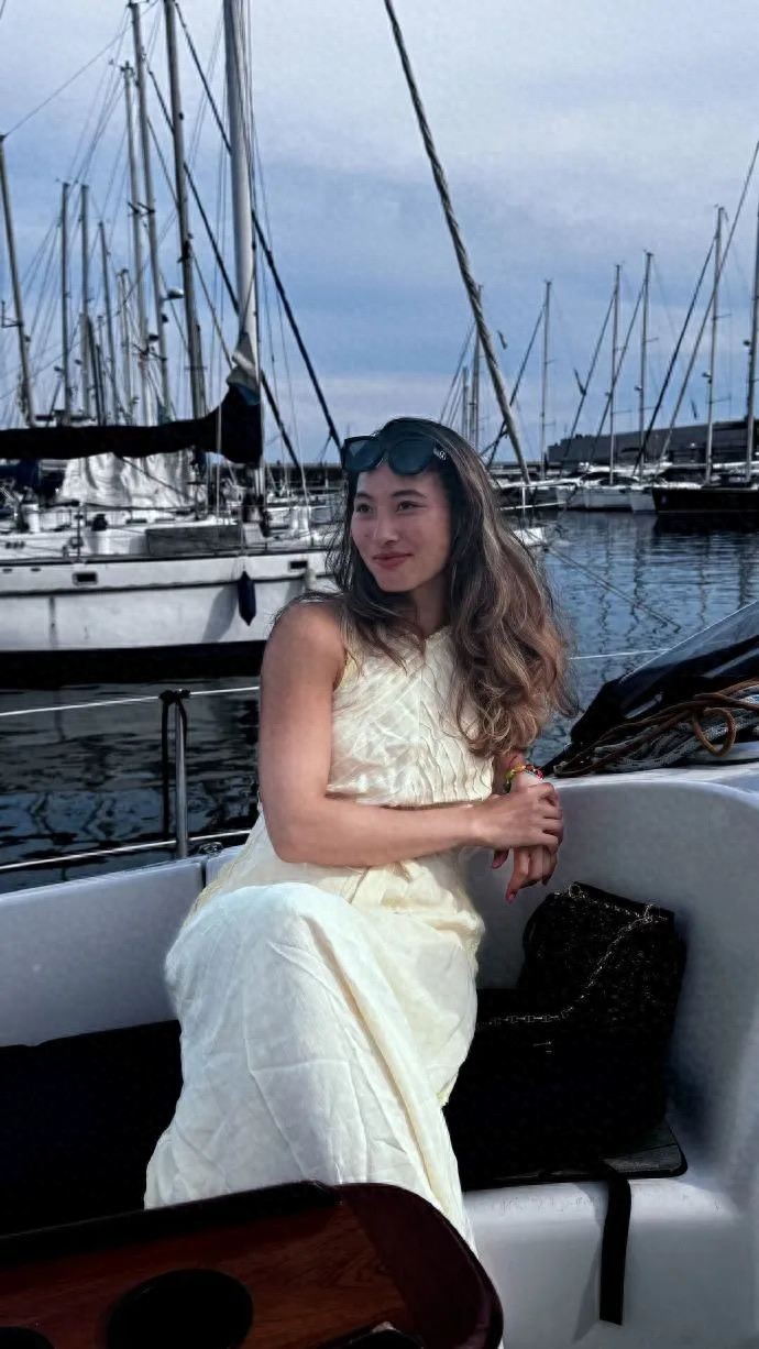 郑钦文一袭淡黄色长裙现身海边,微风吹拂,长发飘飘,状态十分轻松。