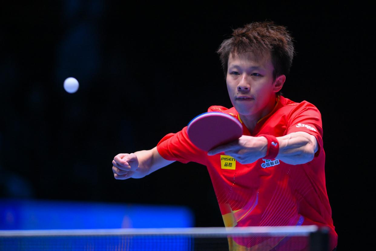 4月15日,中国选手林高远在比赛中回球。新华社发(张金加摄)