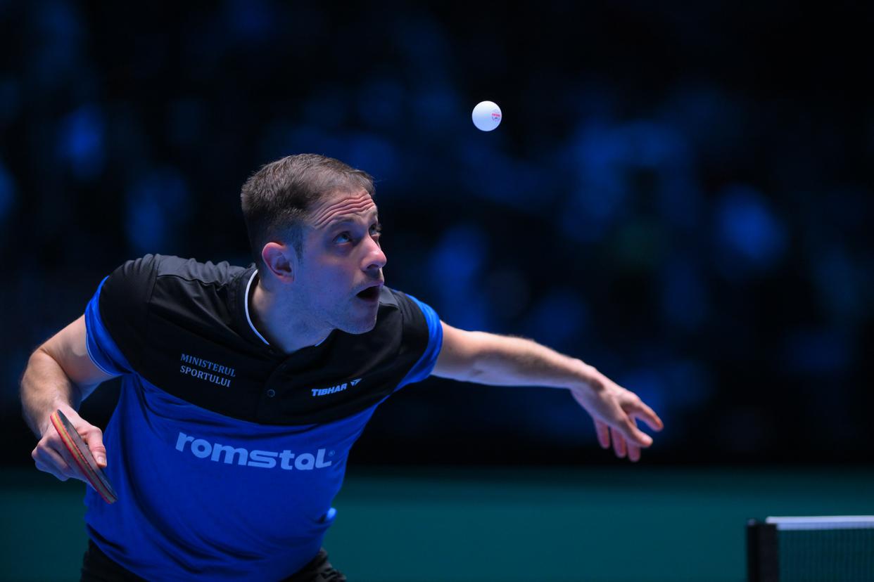 4月15日,罗马尼亚选手奥维杜·约内斯库在比赛中发球。新华社发(张金加摄)