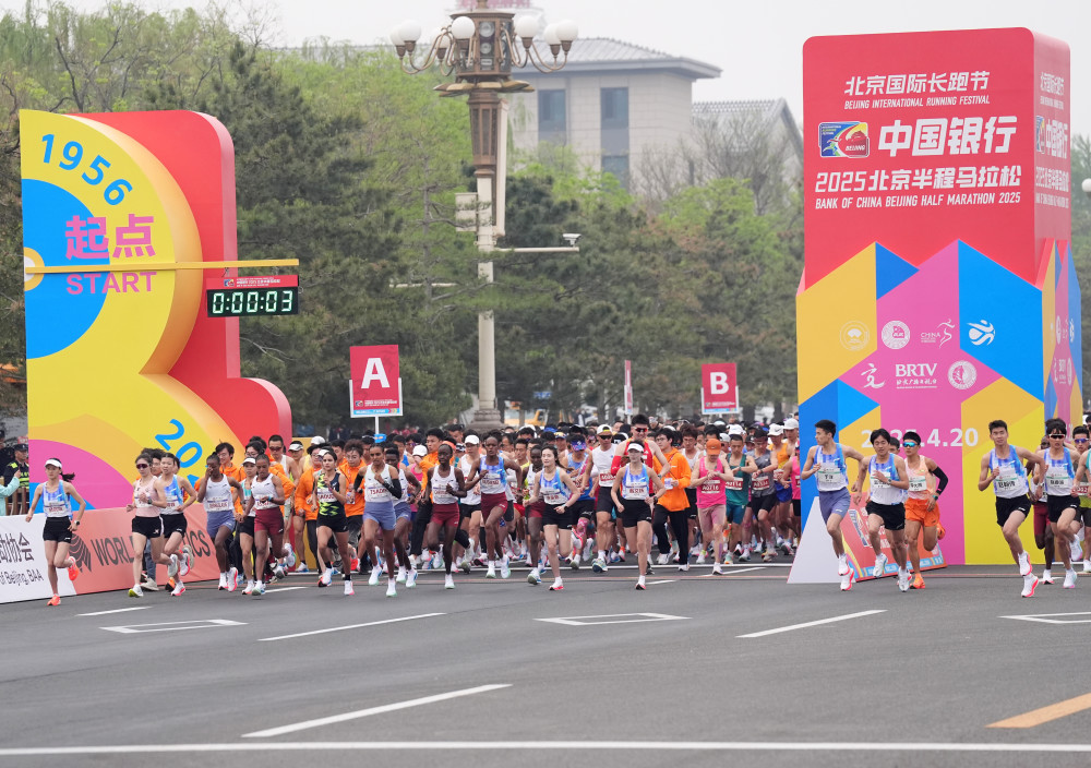 4月20日,2025北京半程马拉松参赛选手从起点出发。 新华社记者张晨霖 摄