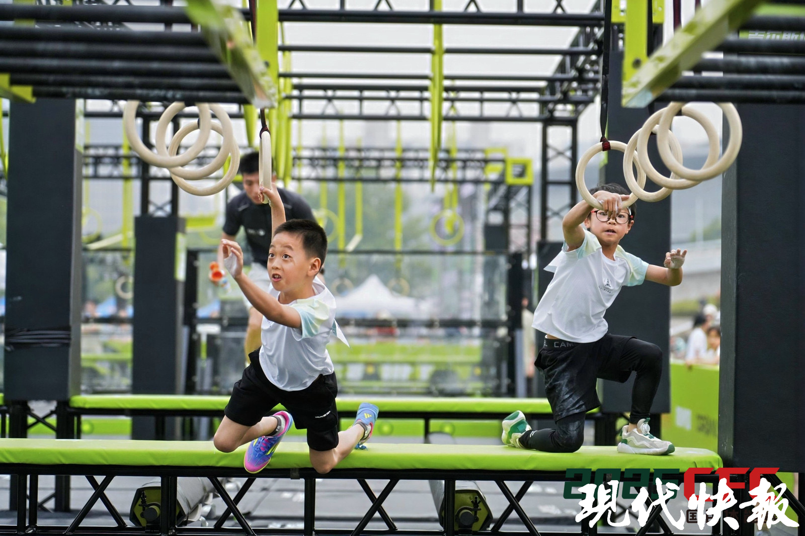 与此同时,比赛进行了技能闯关赛道的体验活动,前来体验的南京市民络绎不绝。CFC国民体能赛将体能健身与户外场景结合,辐射新一代年轻人群体。同时也通过参与互动体验的趣味项目吸引大众参与,为各个年龄段的体能爱好者提供展示自我的机会,促进了体能运动在不同年龄层的普及与发展。赛事期间同步举办“南京建邺体育嘉年华”,联动南京奥林匹克博物馆、当地多家体能馆、运动俱乐部等打造“体育+”多元模式。现场集竞赛、体验、互动、消费于一体,囊括竞技赛事、体验活动、亲子跑等多种运动项目。