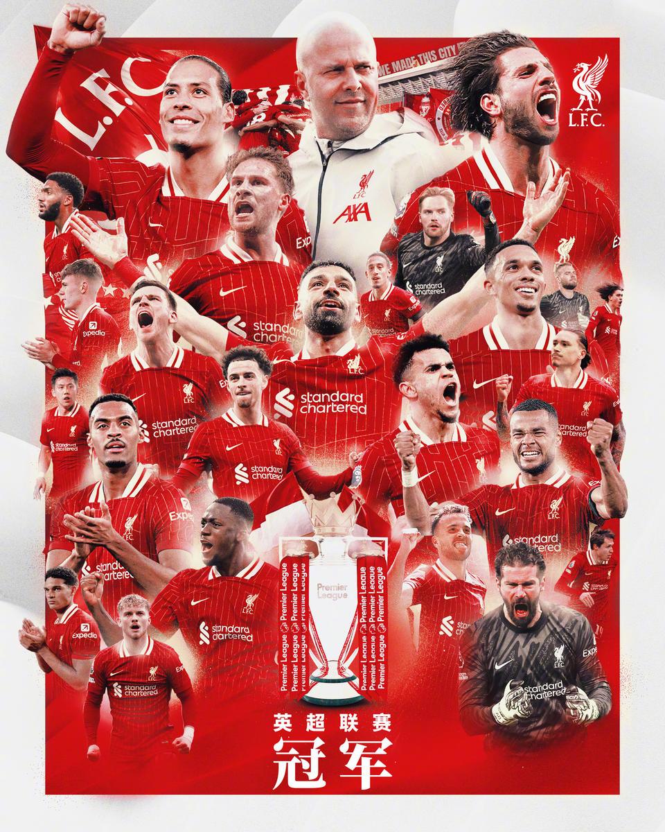 2024-25赛季英超联赛还剩4轮,利物浦联赛积分为82分,积分榜第二的阿森纳积分为67分,利物浦领先阿森纳15分。利物浦也确定提前4轮夺得英超冠军,这是利物浦继2019-20赛季之后,时隔5年第2次问鼎英超冠军,顶级联赛20座冠军,追平曼联并列第一。