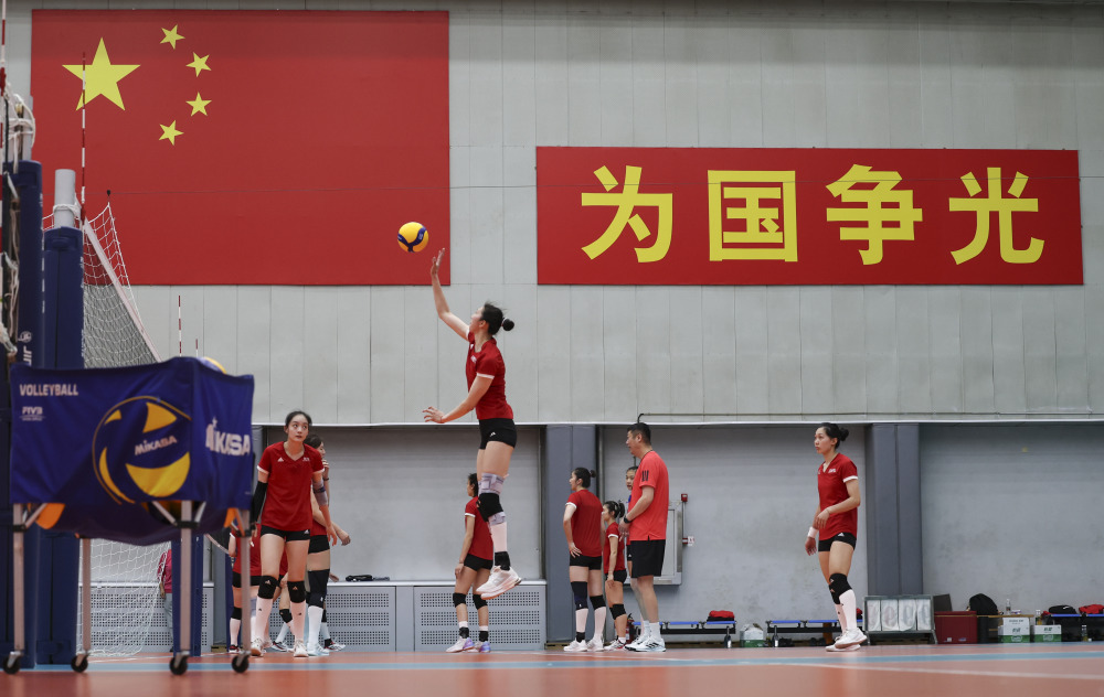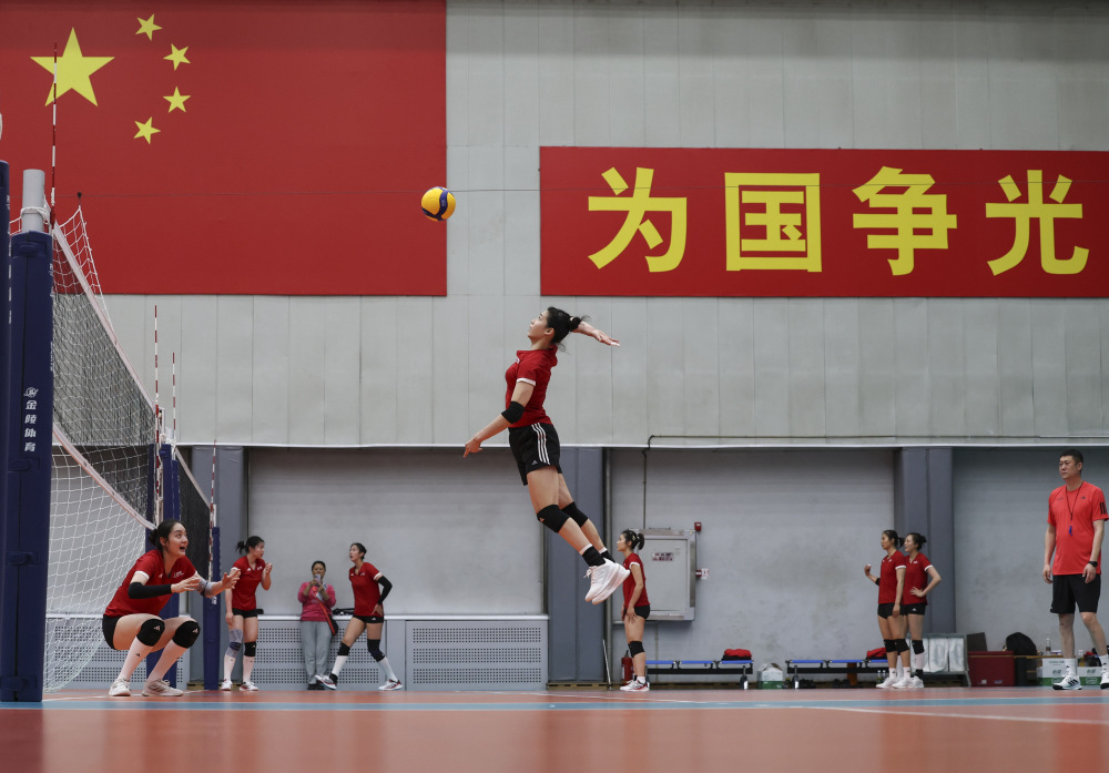 当日,新一届中国国家女子排球队在北京举行公开训练课。