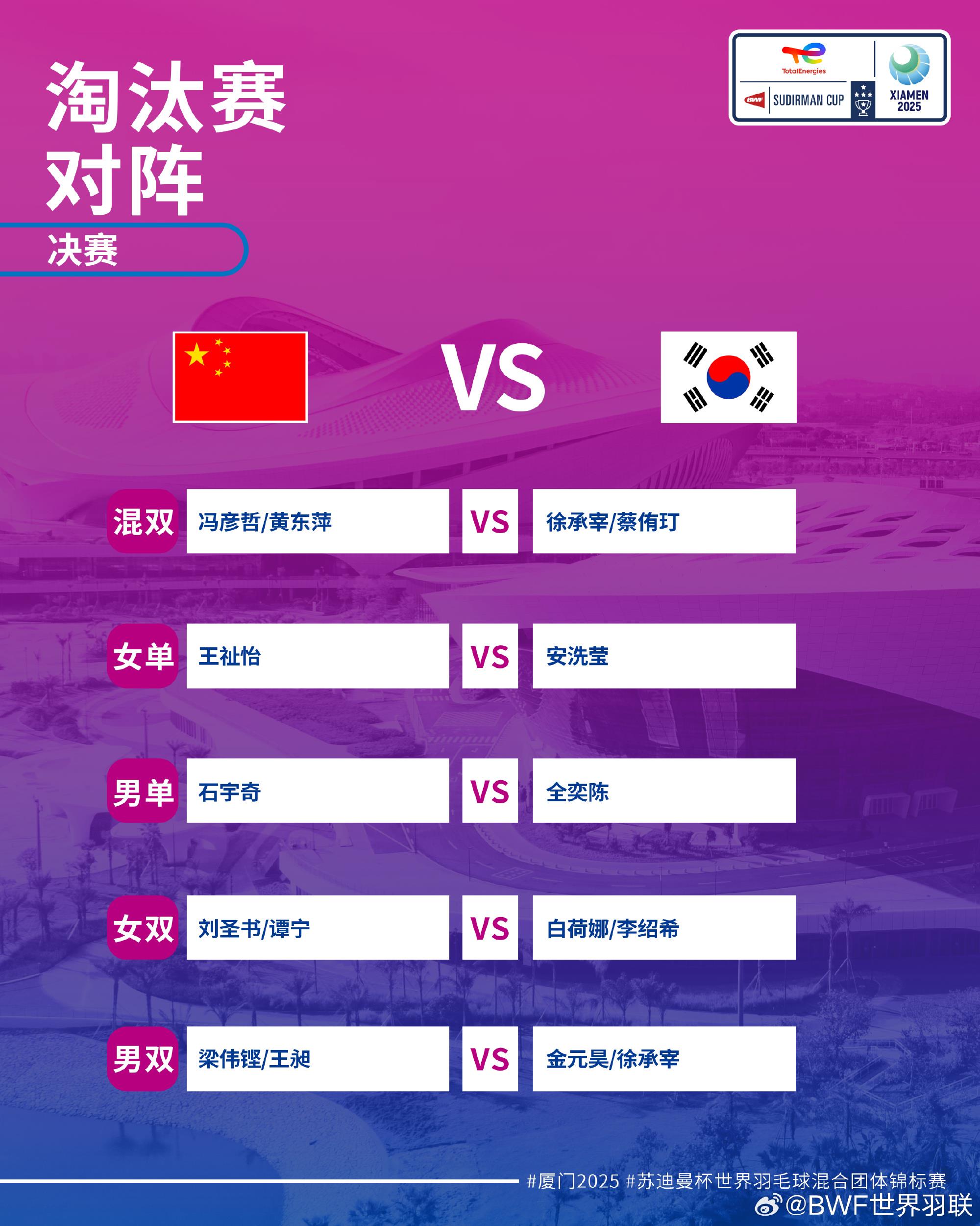 苏迪曼杯决赛对阵名单出炉!中国队对阵韩国队