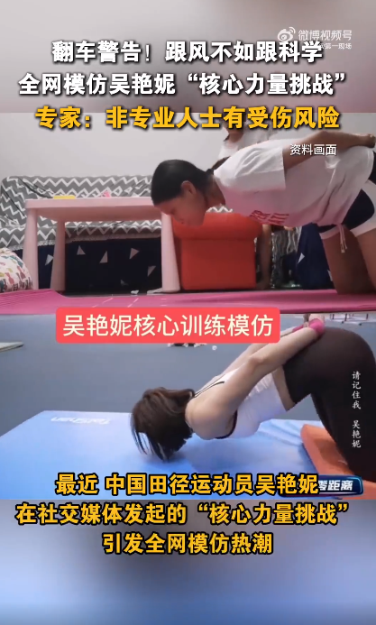 近日,中国田径运动员吴艳妮在社交媒体发起的"核心力量挑战"引发全网模仿热潮。