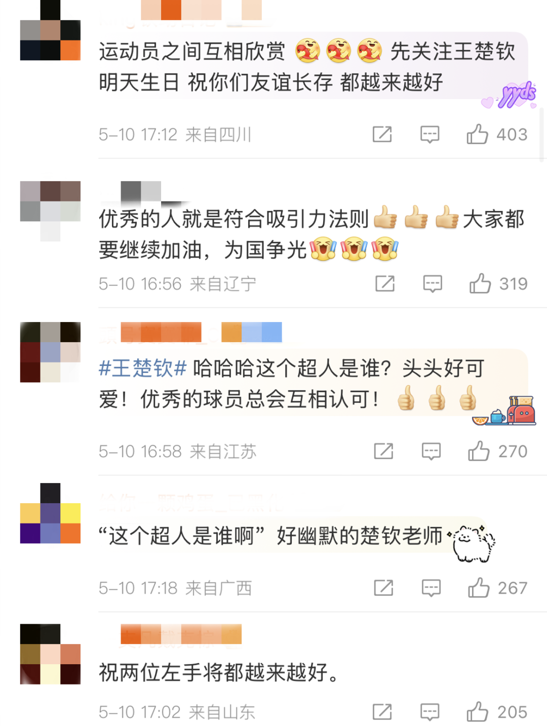 此前,赵心童曾在个人社交账号晒出与王楚钦合影。王楚钦当时刚夺得亚洲杯男单冠军,赵心童发文祝贺称“越来越好”并透露两人进行了中式台球友谊赛,赵心童幽默回复网友称,“我惜败”。