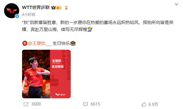 今天,王楚钦迎来25岁生日,国际奥委会、世界乒联纷纷送上生日祝福。