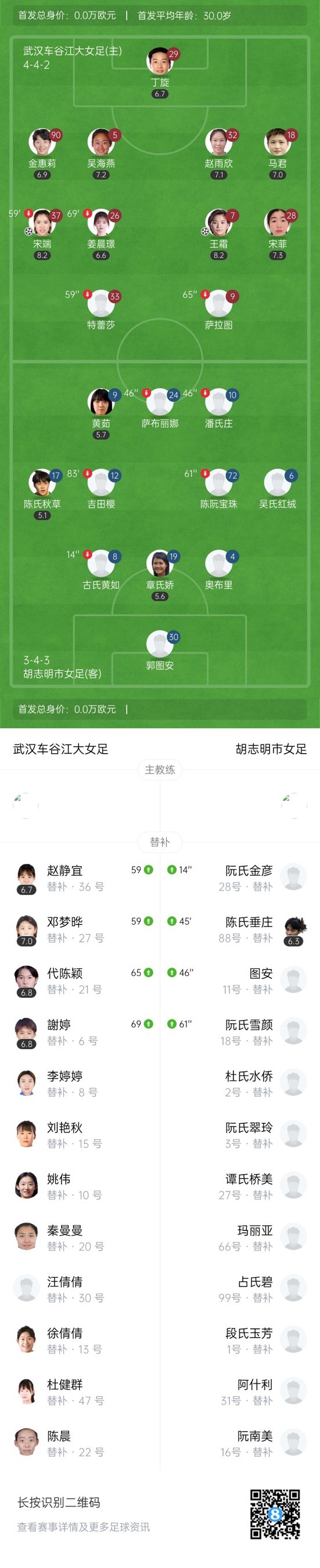 下半场补时6分钟,武汉女足2-0胡志明市女足。