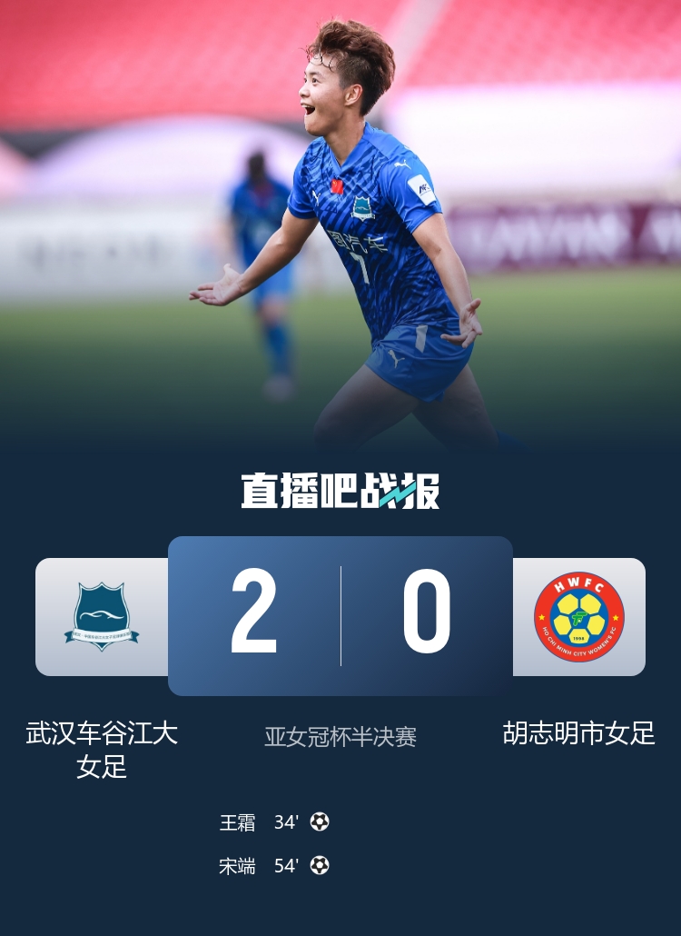 5月21日,2025年女足亚冠联赛半决赛在武汉市体育中心体育场举行,由武汉车谷江大女足对阵胡志明市女足。最终凭借王霜和宋端的进球,武汉车谷江大2-0击败了胡志明市女足,成功闯入亚冠决赛!