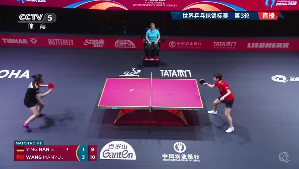 北京时间5月22日,2025年多哈世界乒乓球锦标赛女单第三轮,王曼昱激战五局,4-1战胜德国选手韩莹,晋级16强,五局比分为12-10、12-10、9-11、11-4、13-11。