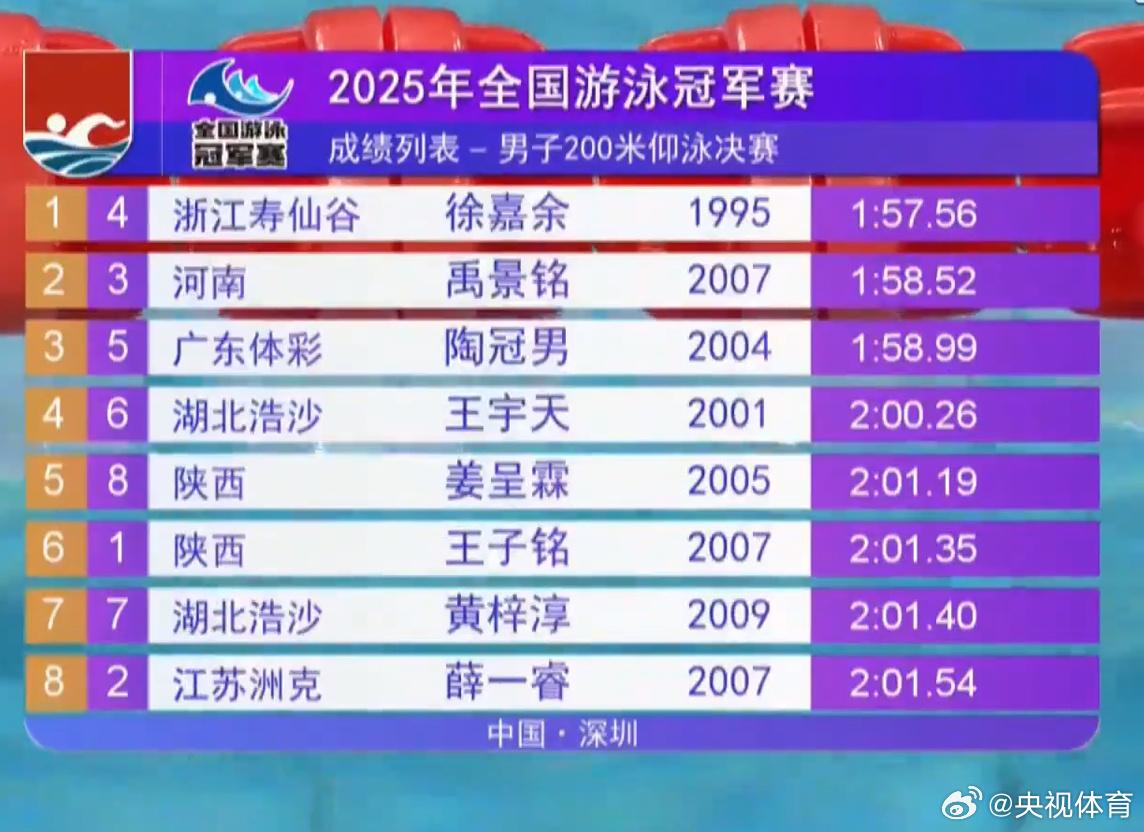 2025年全国游泳冠军赛男子200米仰泳决赛,