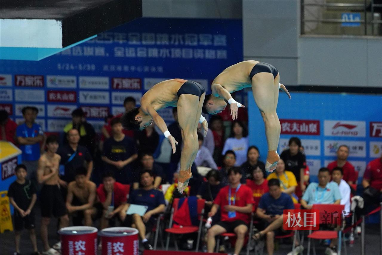 5月24日,2025年全国跳水冠军赛暨新加坡世锦赛选拔赛、全运会跳水项目资格赛,在武汉体育中心游泳馆举行。在男子双人10米跳台决赛中,来自湖北的程子龙和广东的朱子锋以421.89分的成绩获得冠军。
