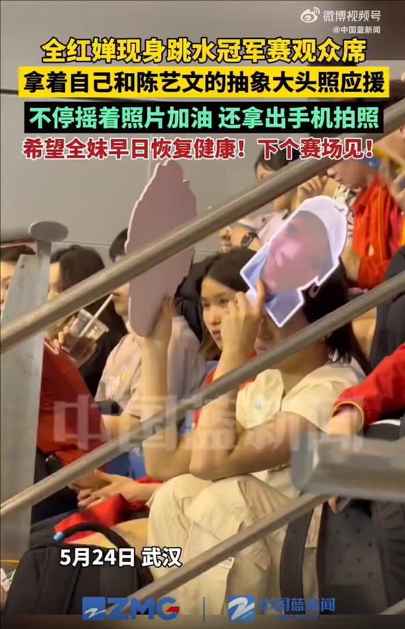 5月24日,2025年全国跳水冠军赛在武汉揭幕。因伤病缺席赛事的全红婵来到赛场为广东队友加油。