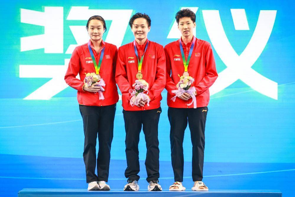 在女子单人3米板决赛中,两届奥运冠军陈艺文与今年取得三站跳水世界杯冠军的陈佳你追我赶,前三轮陈佳始终保持微弱领先优势。第四轮,陈艺文高质量完成难度系数较高的107B动作,实现总分反超。最后一跳,陈艺文顶住压力,最终以392.70分夺冠。陈佳以380.55分摘得银牌,李亚杰获得铜牌。