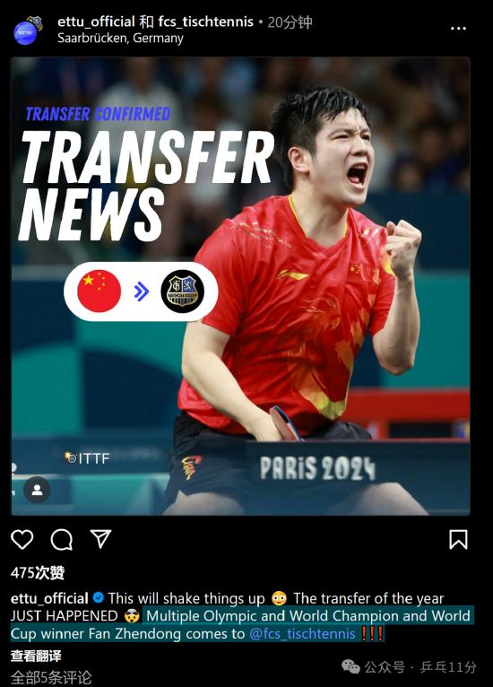 “这件事发生得太突然、太快了,以至于我们现在还难以百分之百地相信。但这确实是真的——樊振东将为我们效力。这不仅在竞技层面上是一次绝对的里程碑,同时也是对我们俱乐部乃至整个德国和欧洲乒乓球运动的巨大时刻。”