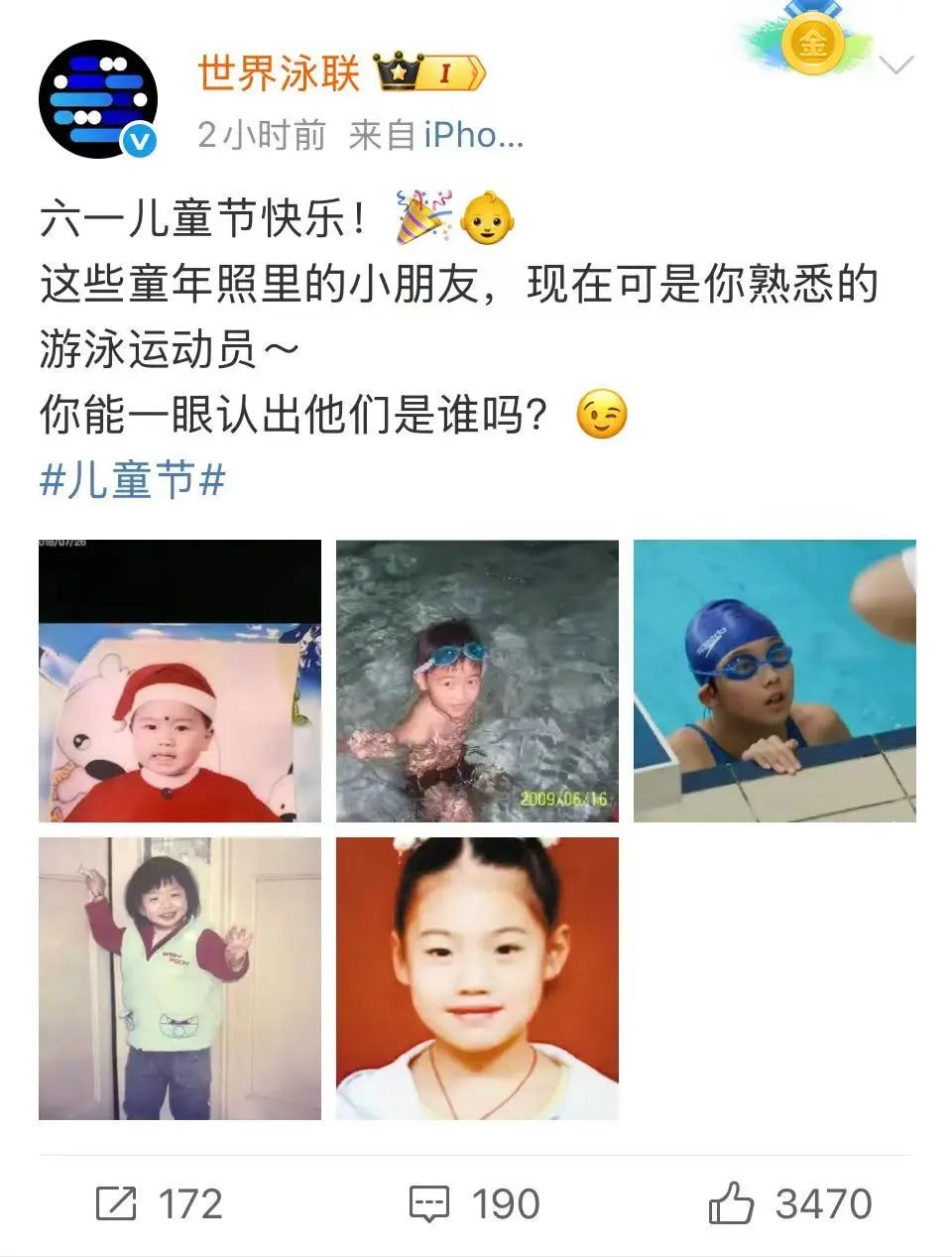 @世界泳联 也晒出潘展乐张雨霏等童年照,你看能猜出来谁是谁吗?