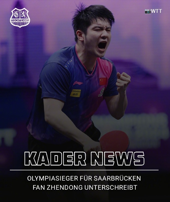 6月1日,德甲萨尔布吕肯俱乐部通过社交媒体宣布中国运动员樊振东加盟该俱乐部,征战2025—2026赛季德国乒乓球甲级联赛和欧洲冠军联赛。