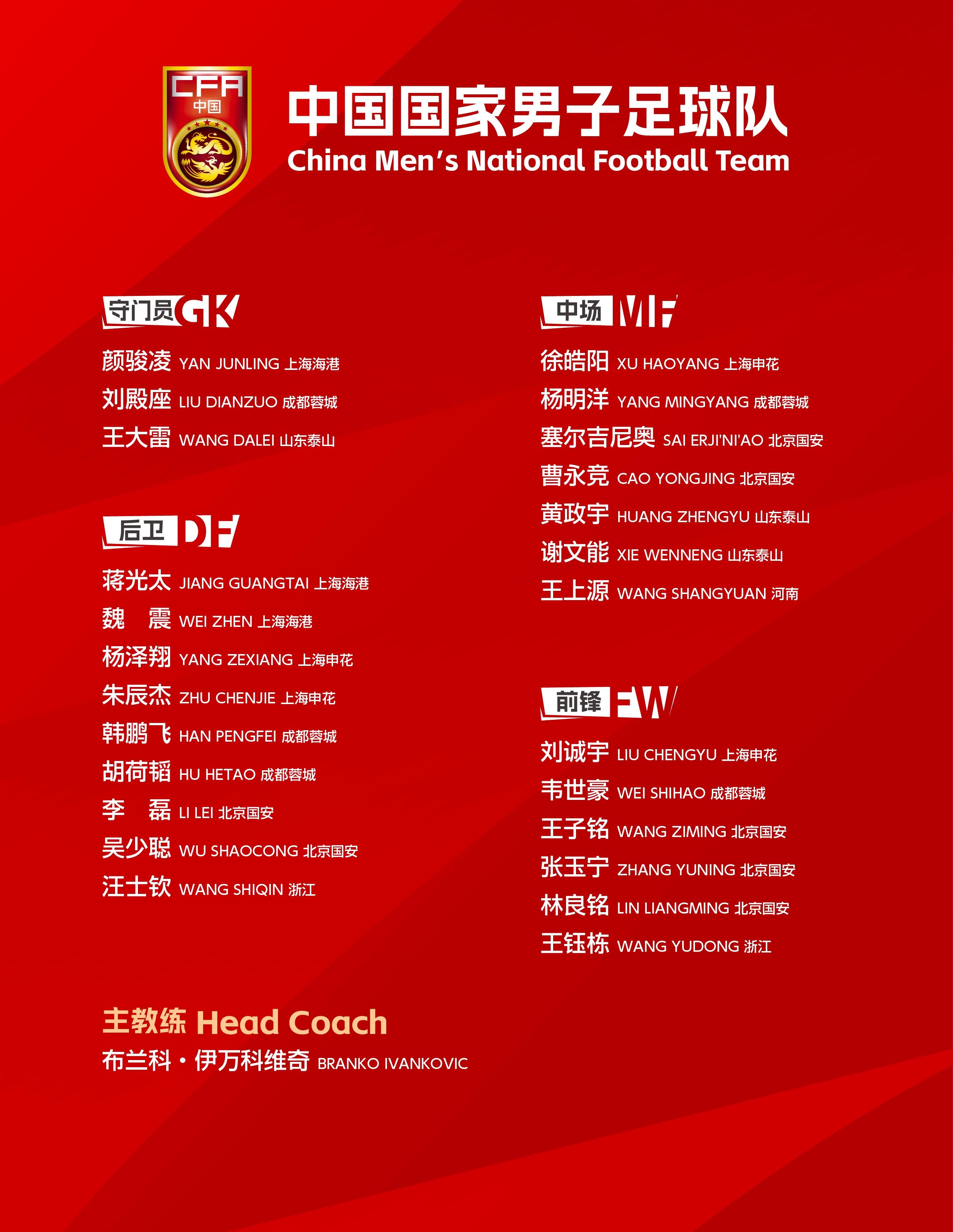6月2日,中国男足出征印度尼西亚参加世预赛的25人名单出炉,塞尔吉尼奥、王钰栋、刘诚宇等人入选,此前同球队参与合练的刘若钒因伤缺席。