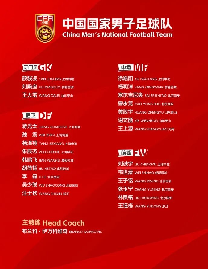 6月2日,中国男足出征印度尼西亚参加世预赛的25人名单出炉,塞尔吉尼奥、王钰栋、刘诚宇等人入选,此前同球队参与合练的刘若钒因伤缺席。