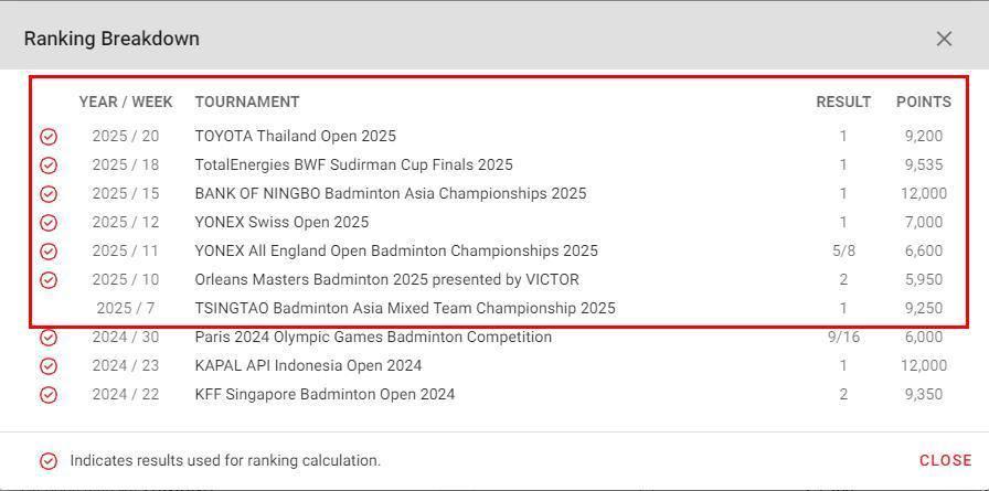 截至2025年6月,陈雨菲世界排名从复出初期的第13位升至第5位,随着参加赛事的累积,她的有效积分越多,排名也将会有大的提升。当然,让大家更欣慰的是,巴黎奥运会后经过半年多的休整,陈雨菲的比赛欲望明显提升,明年的羽毛球法国世锦赛我们可能将会看到一个更好的陈雨菲,如果能夺冠她将圆梦大满贯。