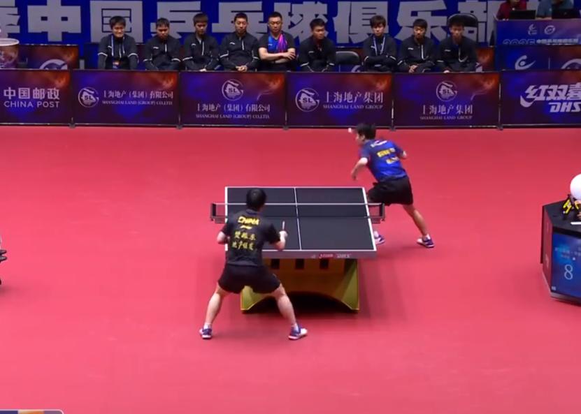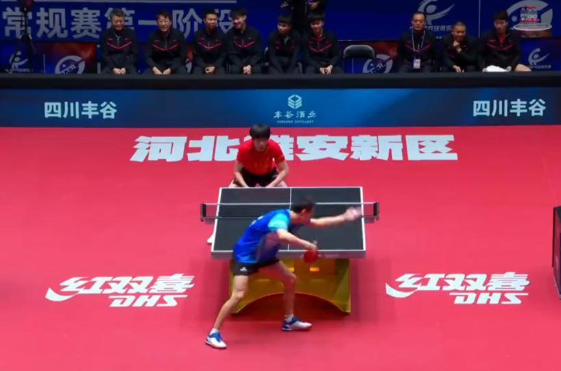 在上海地产集团队对阵黄石基地·华新队的比赛中,樊振东3:2逆转战胜林诗栋,斩获乒超五连胜。