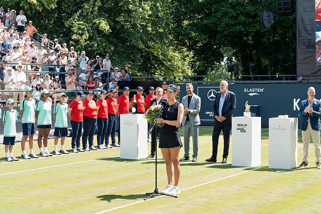 △当地时间2025年6月21日,2025WTA500柏林公开赛女单决赛颁奖仪式上的王欣瑜。