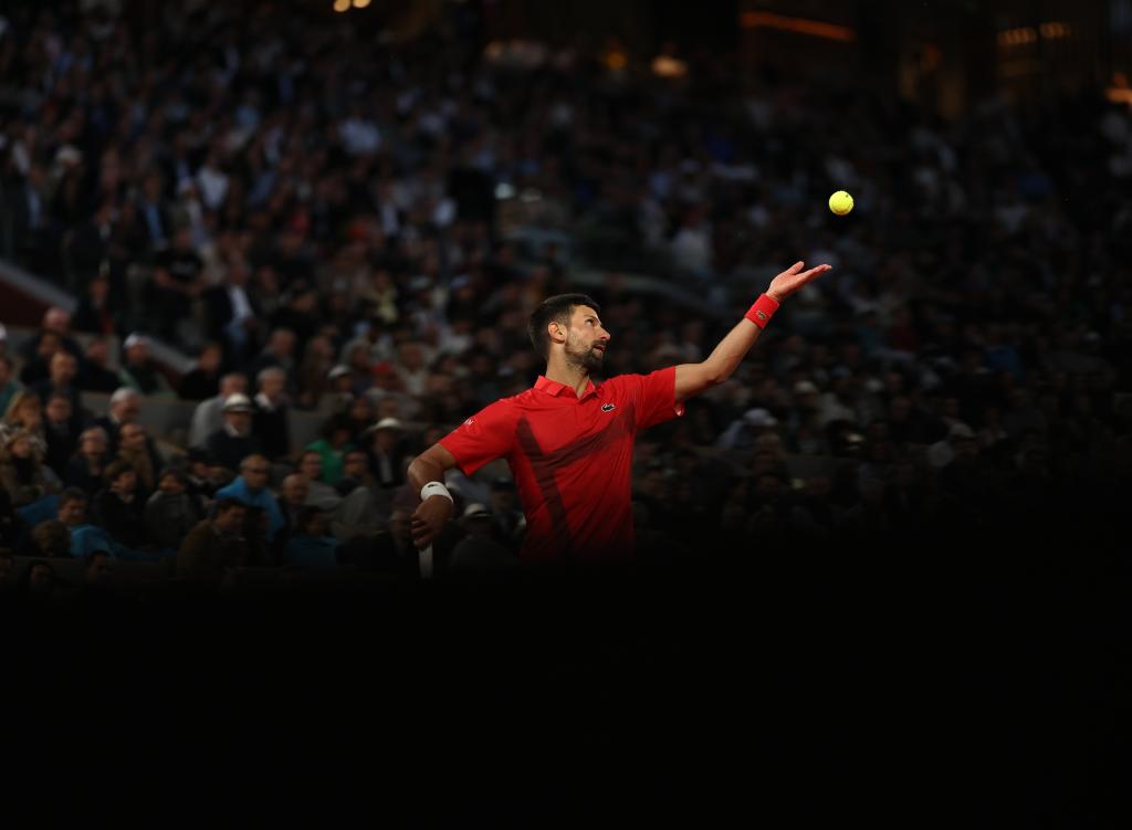 焦科维奇在2025法国网球公开赛男子单打半决赛中发球(6月6日摄)。新华社记者 李京 摄