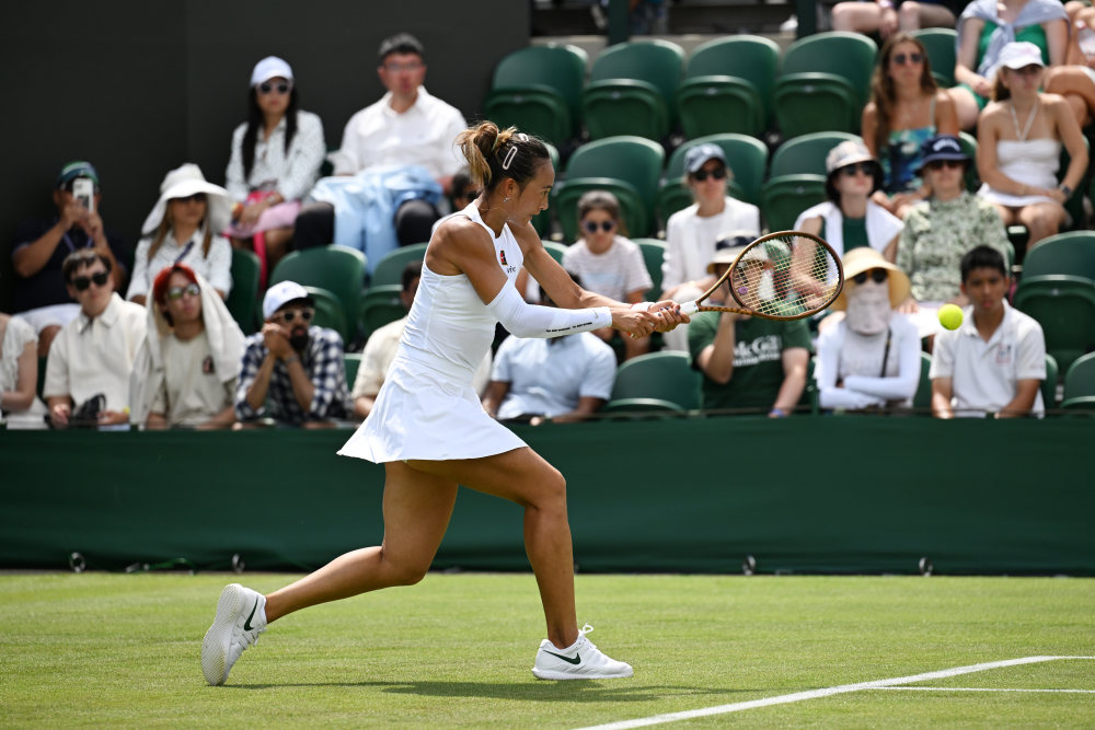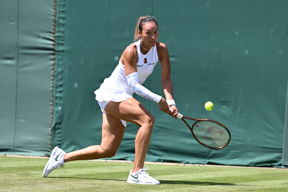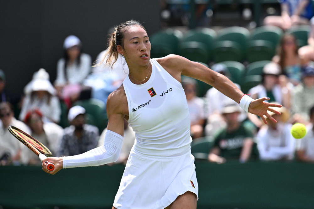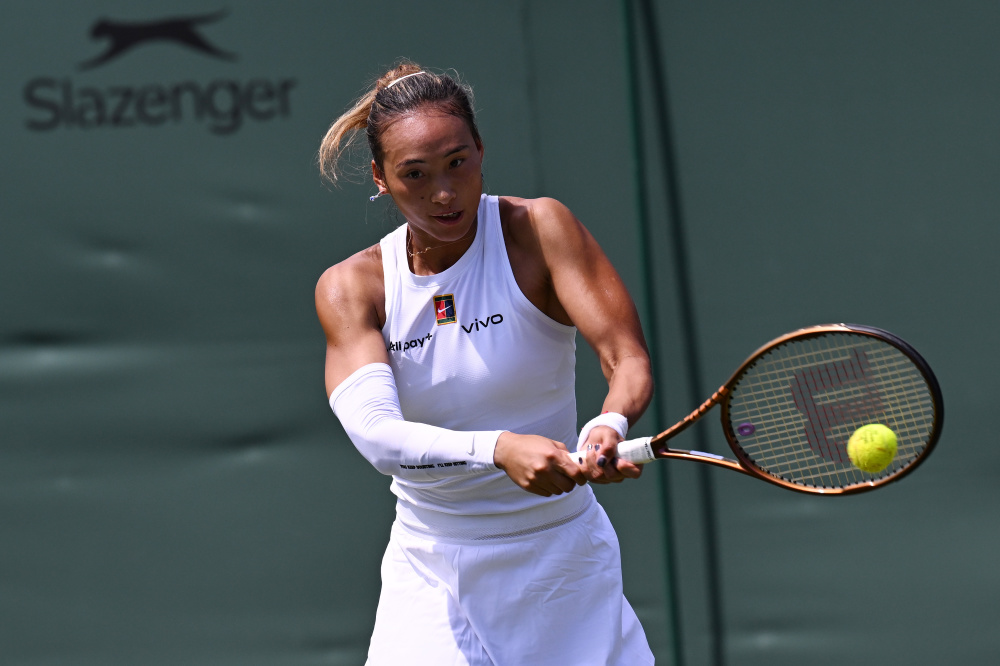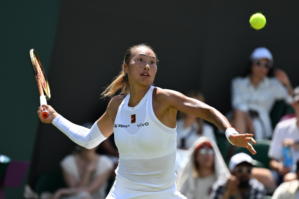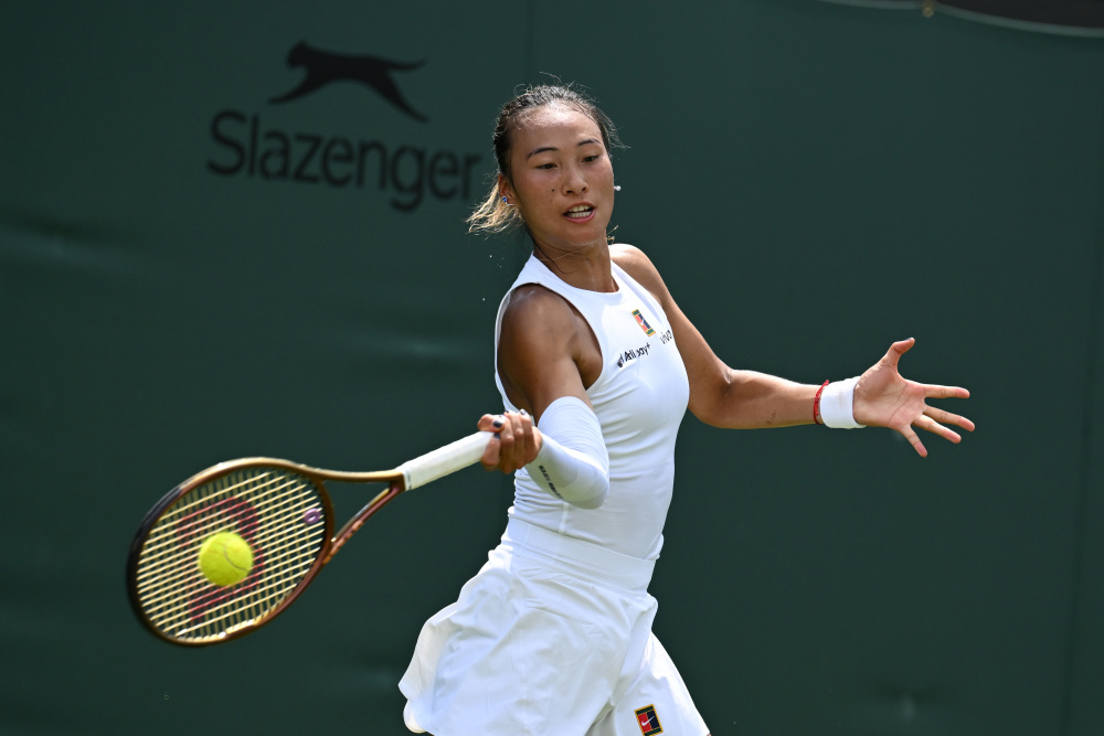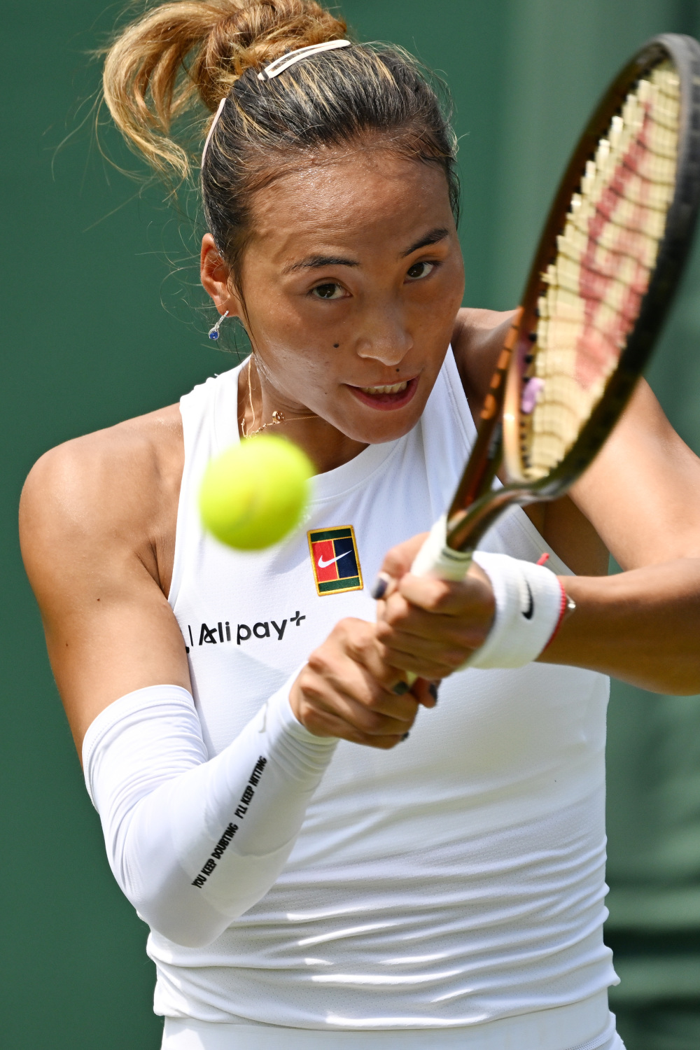 7月1日,郑钦文在比赛中。新华社记者 赵丁喆 摄