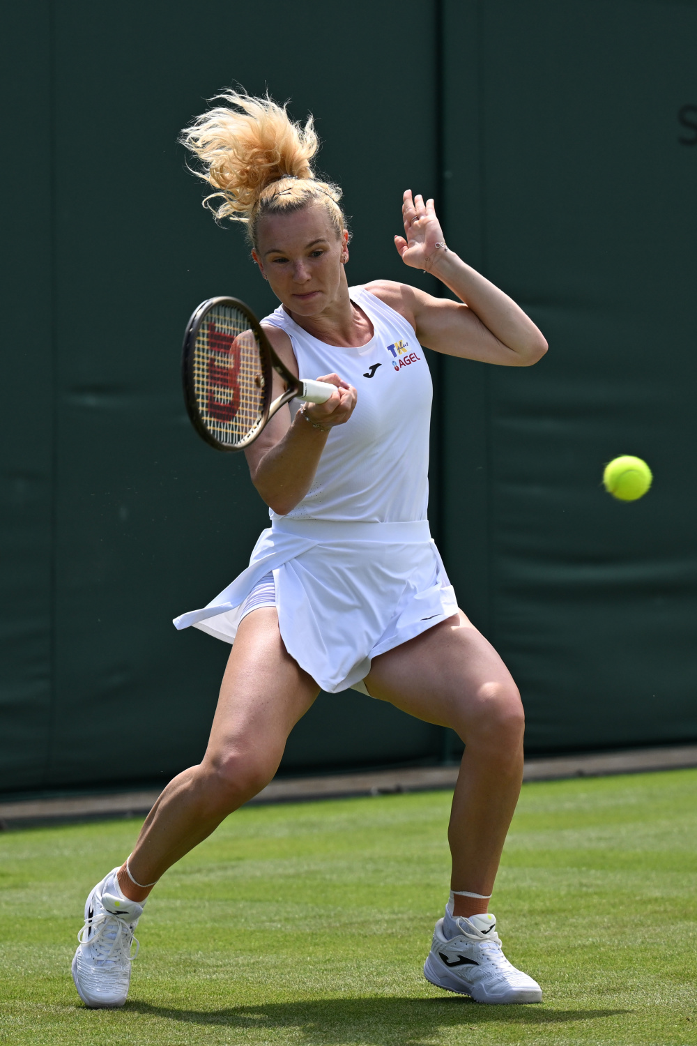 7月1日,西尼亚科娃在比赛中回球。新华社记者 赵丁喆 摄