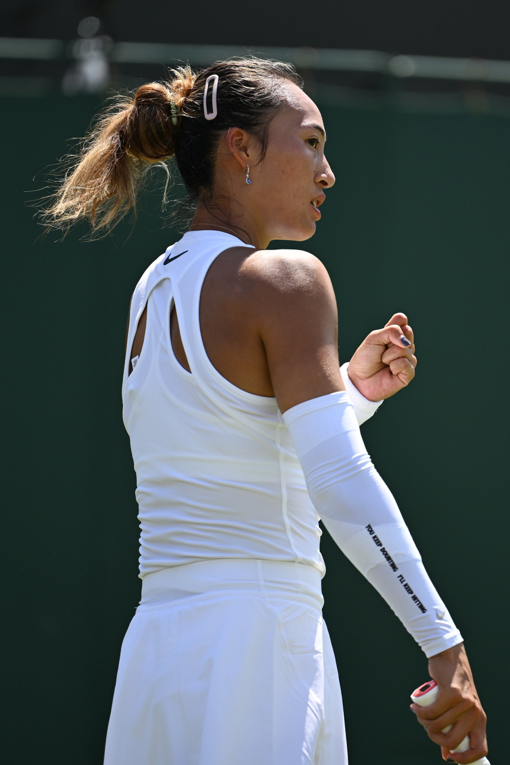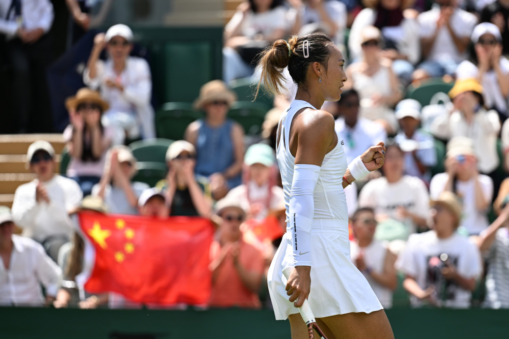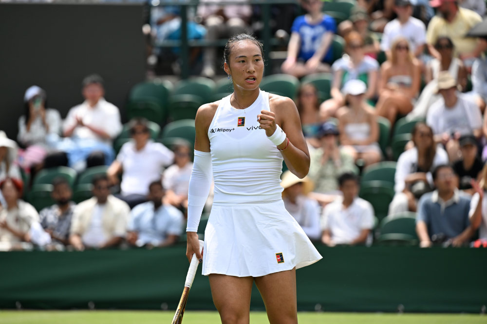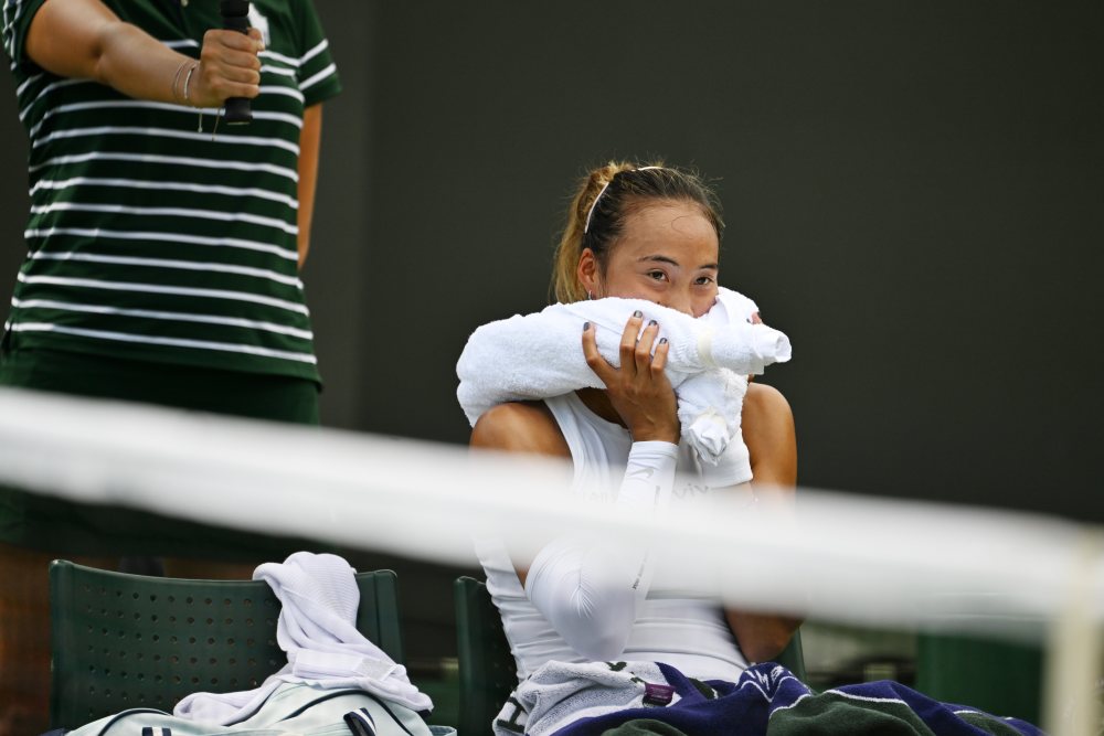 7月1日,郑钦文在比赛间隙。新华社记者 赵丁喆 摄