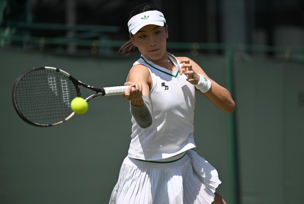 7月1日,王欣瑜在比赛中回球。新华社记者 李颖 摄
