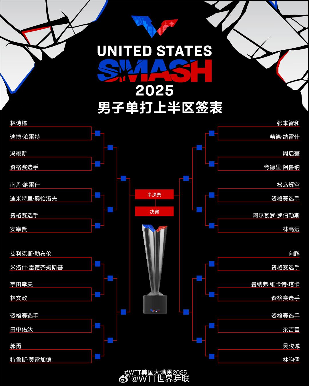 北京时间7月5日凌晨,2025年WTT美国大满贯赛事举行了抽签仪式,随后公布了男女单打签表。