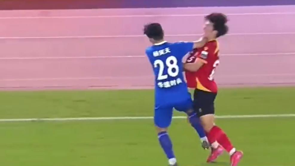 7月5日,“苏超”第六轮南京队对阵苏州队的比赛中,南京队28号球员杨笑天被指对苏州队球员做出锁喉或肘击咽喉的危险动作。