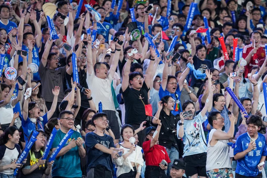 7月5日,球迷在南京奥体中心为球队加油。 新华社记者 李博 摄