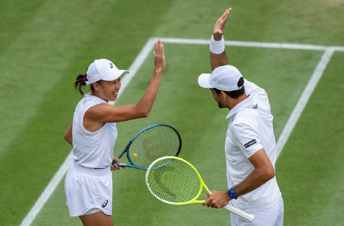 北京时间7月8日,2025年温布尔登网球锦标赛混双1/4决赛,张帅/阿雷瓦洛组合直落两盘战胜克劳茨克/斯库普斯基,闯进混双半决赛,两盘比分为7-5、7-6(7)。