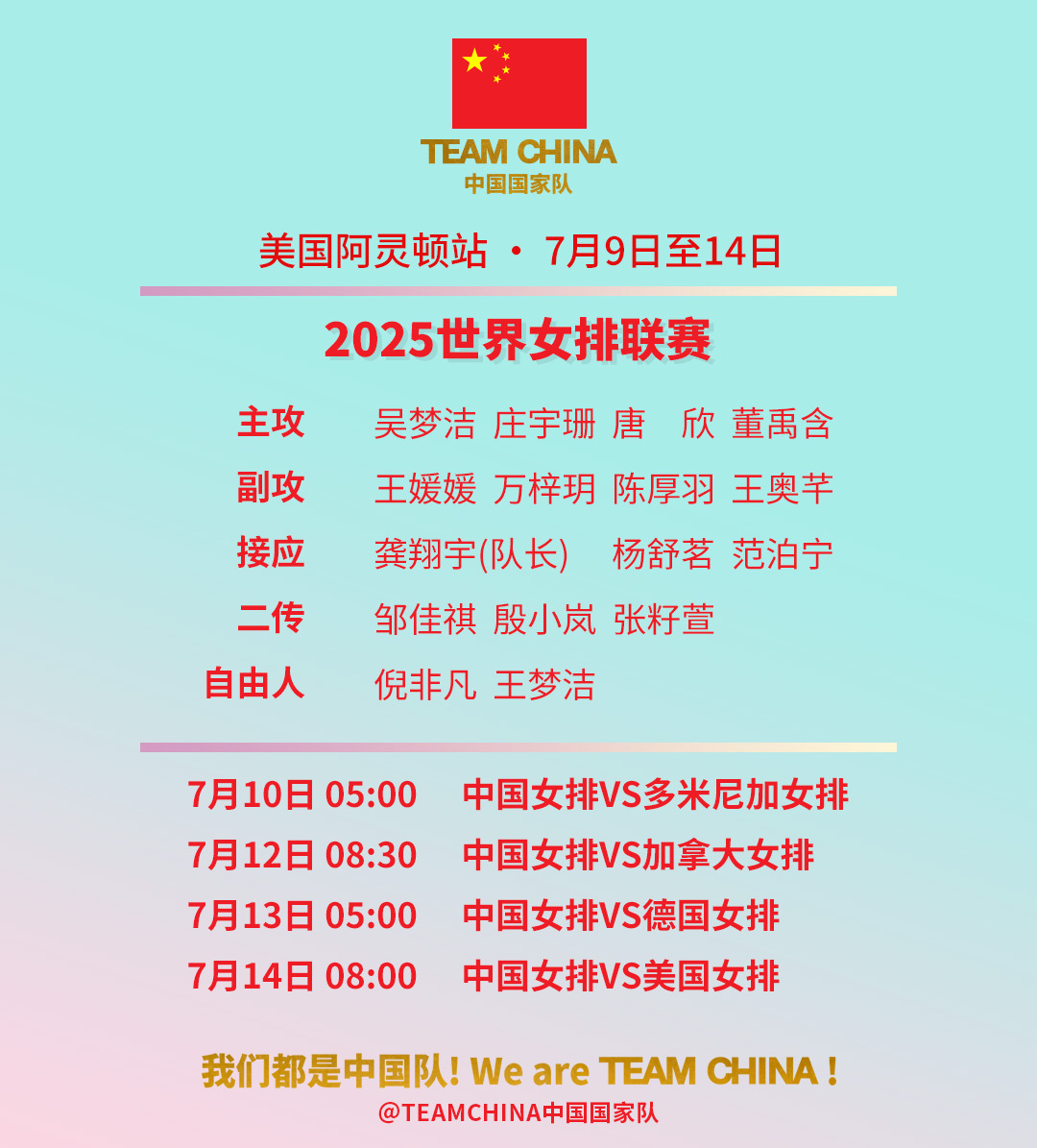 阿灵顿站是中国女排在2025世界女排联赛的最后一站分站赛。中国女排将先后迎战多米尼加、加拿大、德国和美国女排。