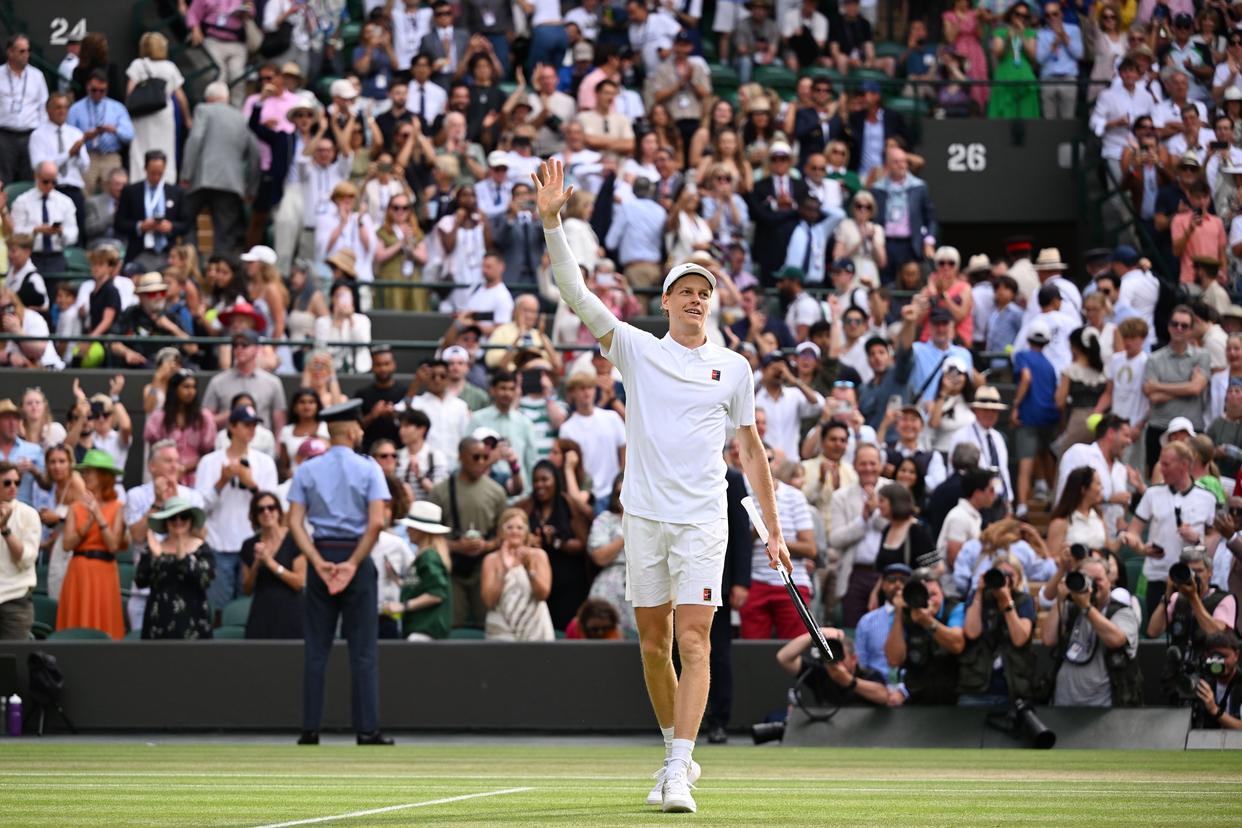 7月9日,辛纳在比赛后庆祝。新华社记者 赵丁喆 摄
