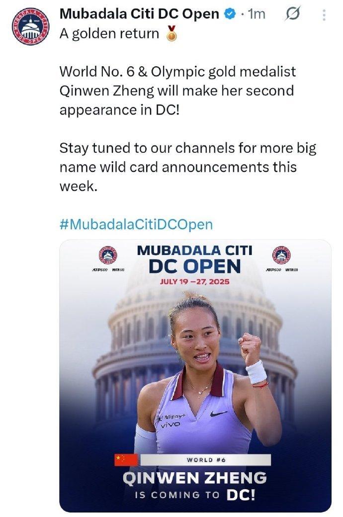 最终,郑钦文将于8月24日亮相美网大满贯赛事,期待中国金花触底反弹!
