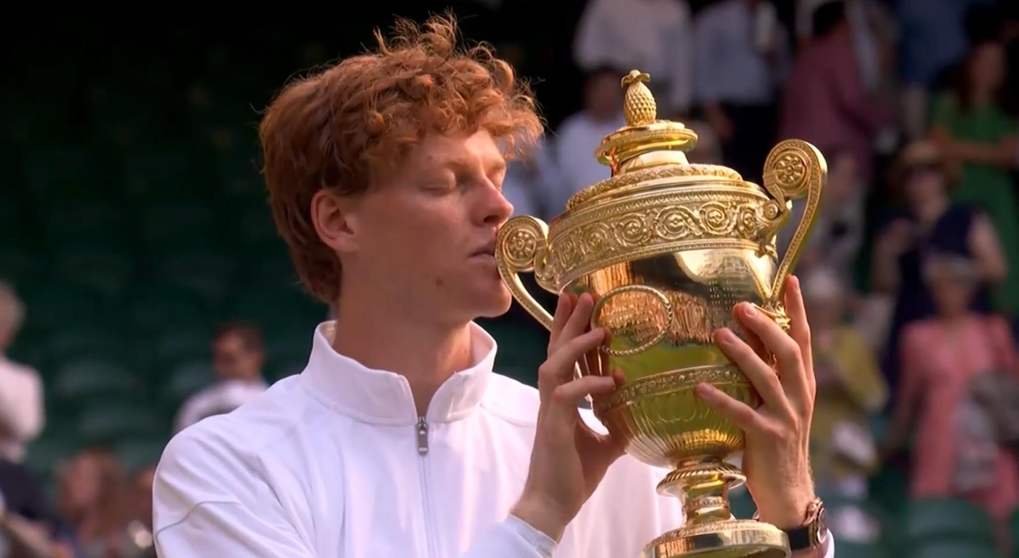 这是辛纳首次夺得温网男单冠军,与此同时,他也成功阻止了阿尔卡拉斯完成“温网三连冠”的梦想。