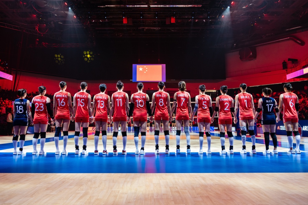 7月12日,中国队球员在比赛前。当日,在美国阿灵顿举行的2025世界女排联赛分站赛中,中国队3比2战胜德国队。新华社发(陈晨摄)