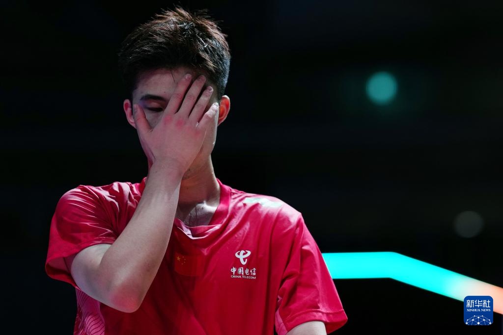 7月18日,翁泓阳在比赛中失分后。新华社记者贾浩成摄