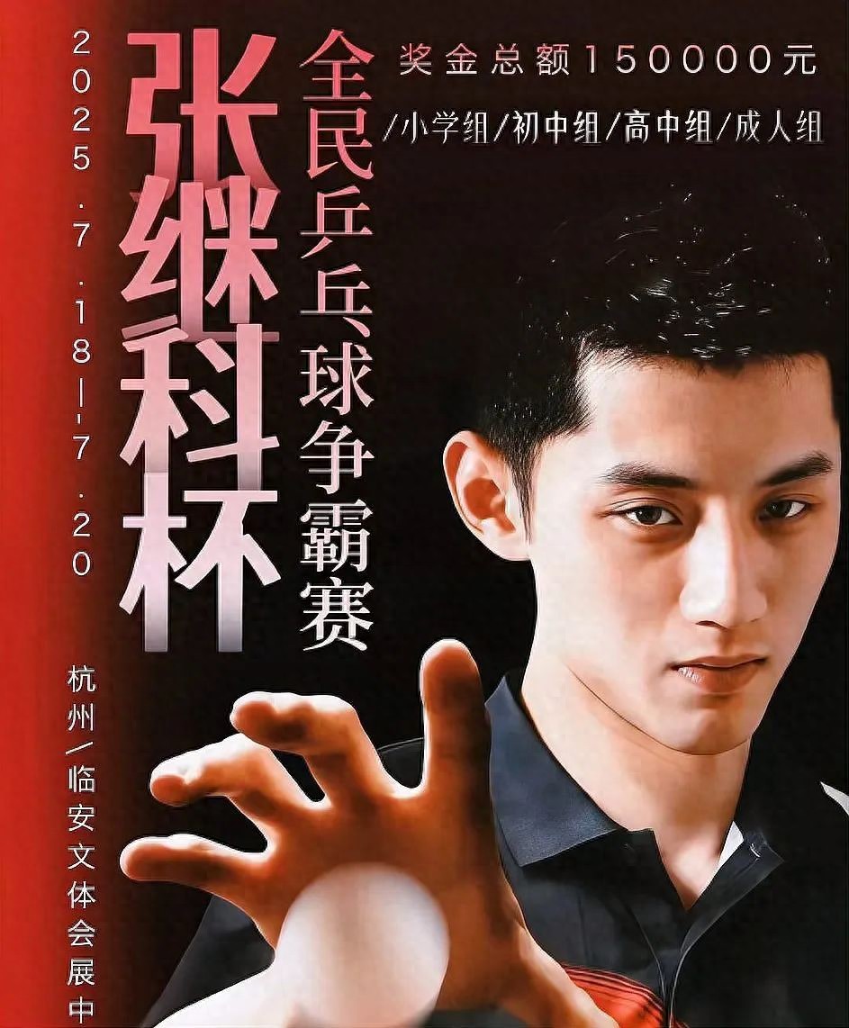 2025年张继科杯全民乒乓球争霸赛·杭州站,7月18日至20日于杭州临安体育文化会展中心举办,本站赛事是张继科个人训练基地落户临安后的首场全国性赛事。