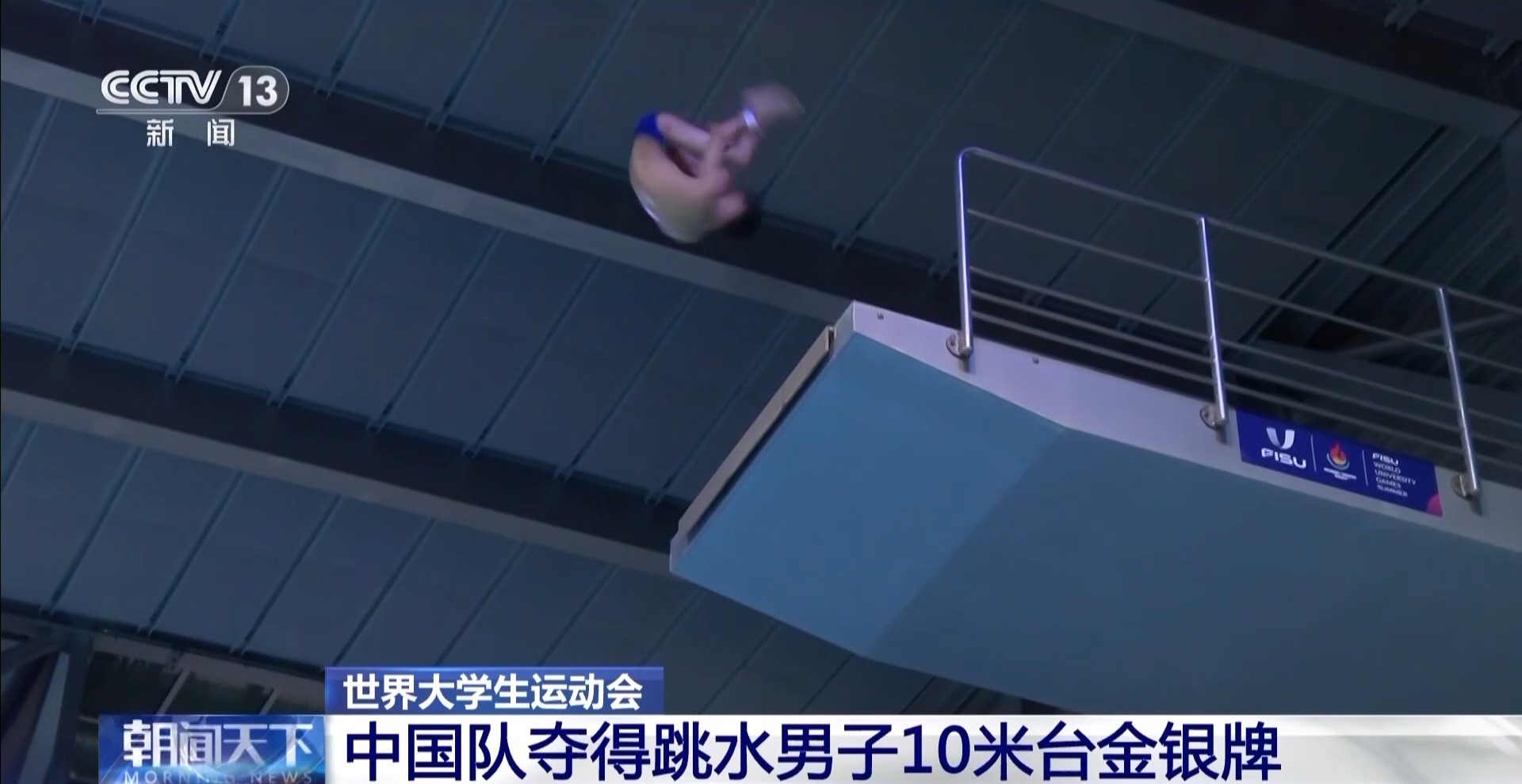 世界大学生运动会正在德国举行。在跳水男子10米台比赛中,中国队的郑钧之和莫永华包揽前两名。