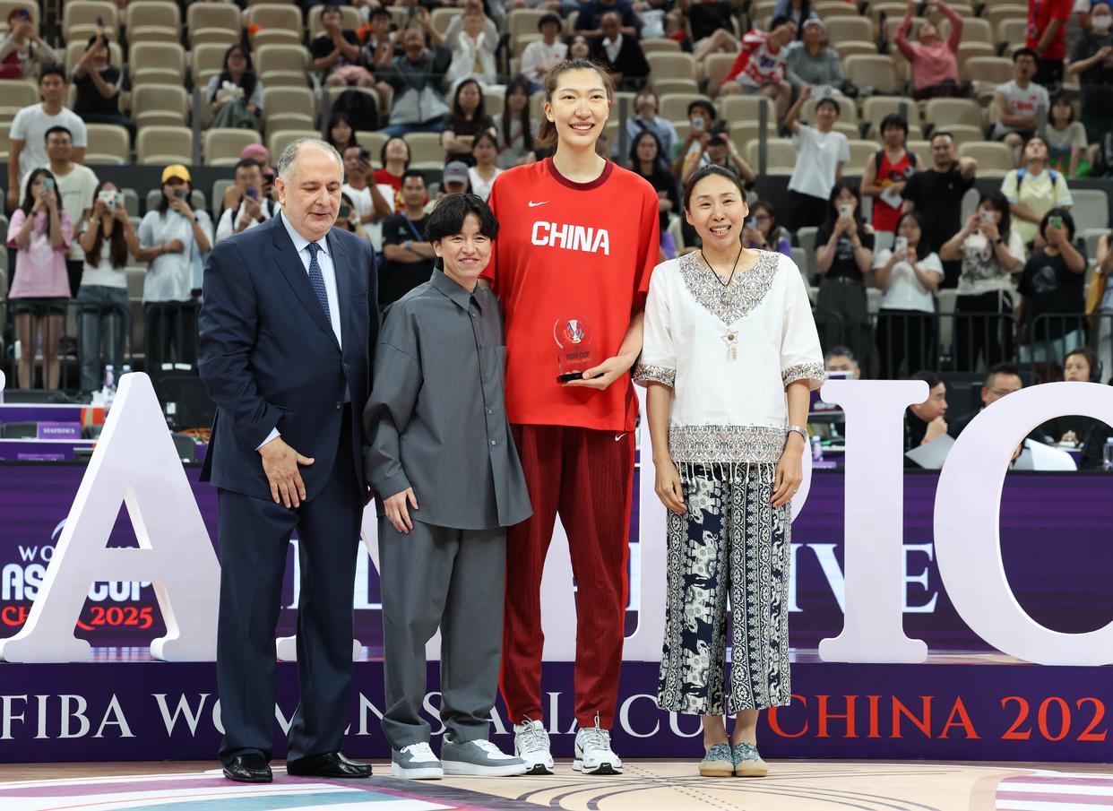 7月20日,入选本届女篮亚洲杯最佳阵容的中国队球员韩旭(右二)在颁奖仪式上。新华社记者 卢汉欣 摄