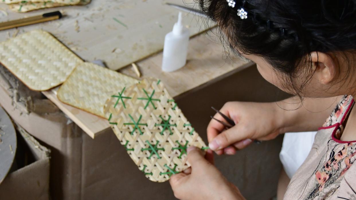 陈岚和他的父亲成立的青神竹编非遗工坊是眉山市第一批市级非遗工坊。陈岚认为,传承非遗最好的方式就是创新,青神竹编最初时只是自编自用的生产工具,现在成了胸章、成了提包、成了茶艺用品,即将成为世界性赛事的奖牌盒,这是青神竹编新的生命力。