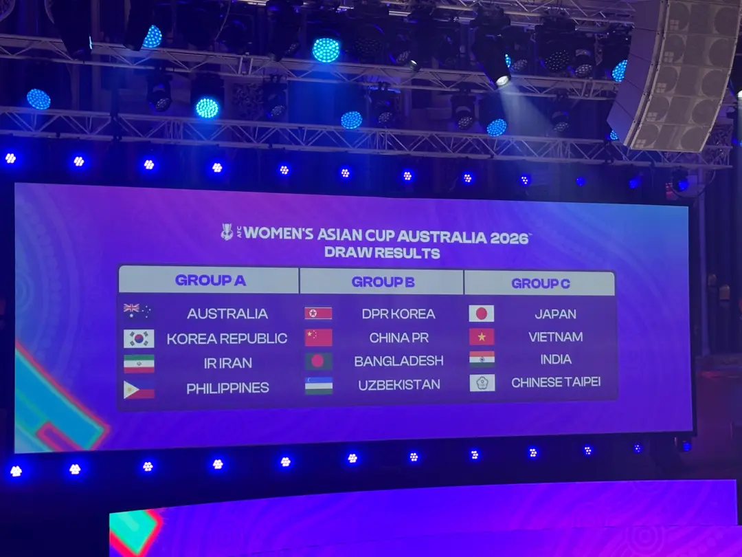 当地时间7月29日晚,正在澳大利亚悉尼举行的2026女足亚洲杯抽签仪式中,中国队与朝鲜队、孟加拉国队、乌兹别克斯坦队分到B组。