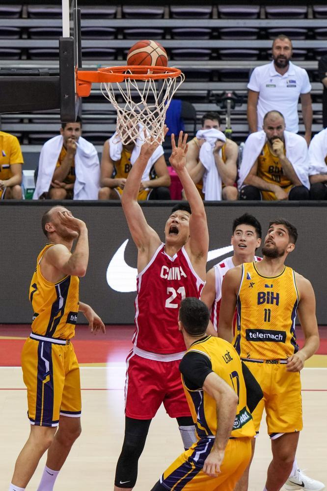 7月29日,胡金秋(左二)在中国队与波黑队的比赛中上篮。当日,在江苏南京举行的2025中国男篮热身赛中,中国队75:72战胜波黑队。新华社记者 李博 摄据悉,中国男篮将于7月31日启程前往沙特阿拉伯吉达,为亚洲杯进行最后的备战冲刺。