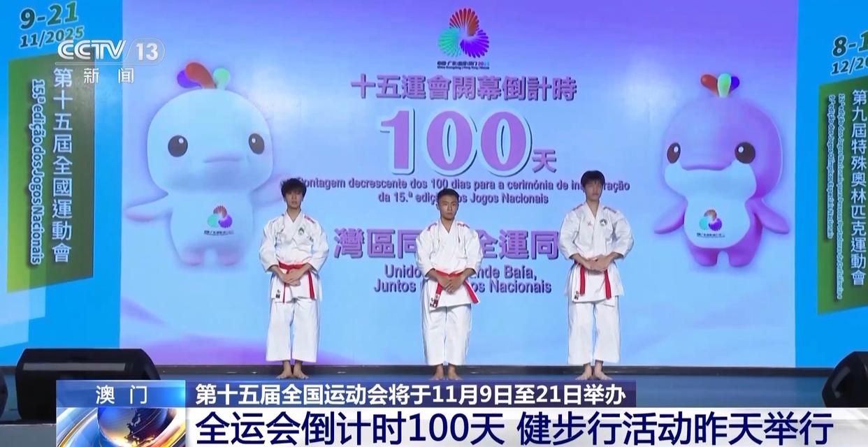 第十五届全国运动会将于11月9日至21日在粤港澳三地举办。昨天(8月1日),全运会迎来倒计时100天,澳门举办健步行等多项活动,感受全运氛围,全民迎接全运会。