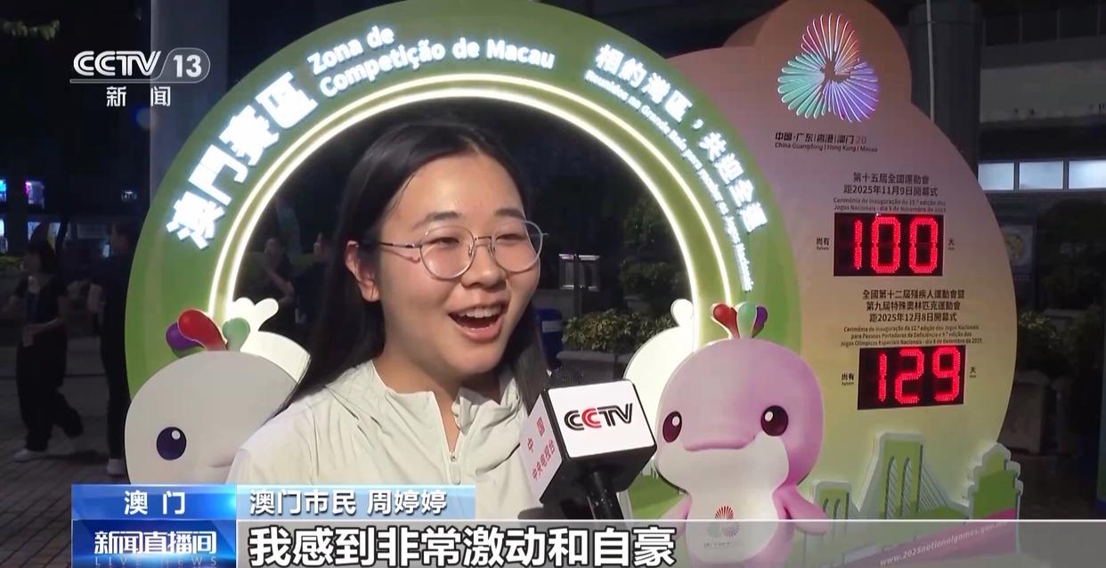 澳门市民 李家豪:好开心国家可以给澳门这个机会举办这么大型的赛事,非常欢迎国家的运动员以及各地的市民都一齐来澳门,可以感受澳门的城市活力,我们一起“激情全运会,活力大湾区”。